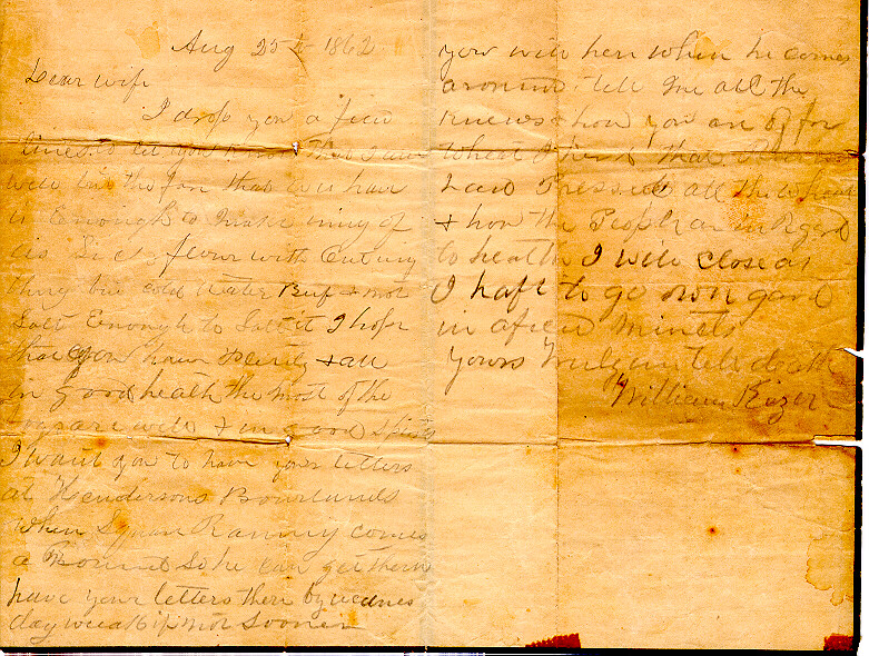 [This letter was written to his wife Thurza Malinda (Shaver) Kizer (#173/1), who was living in Franklin